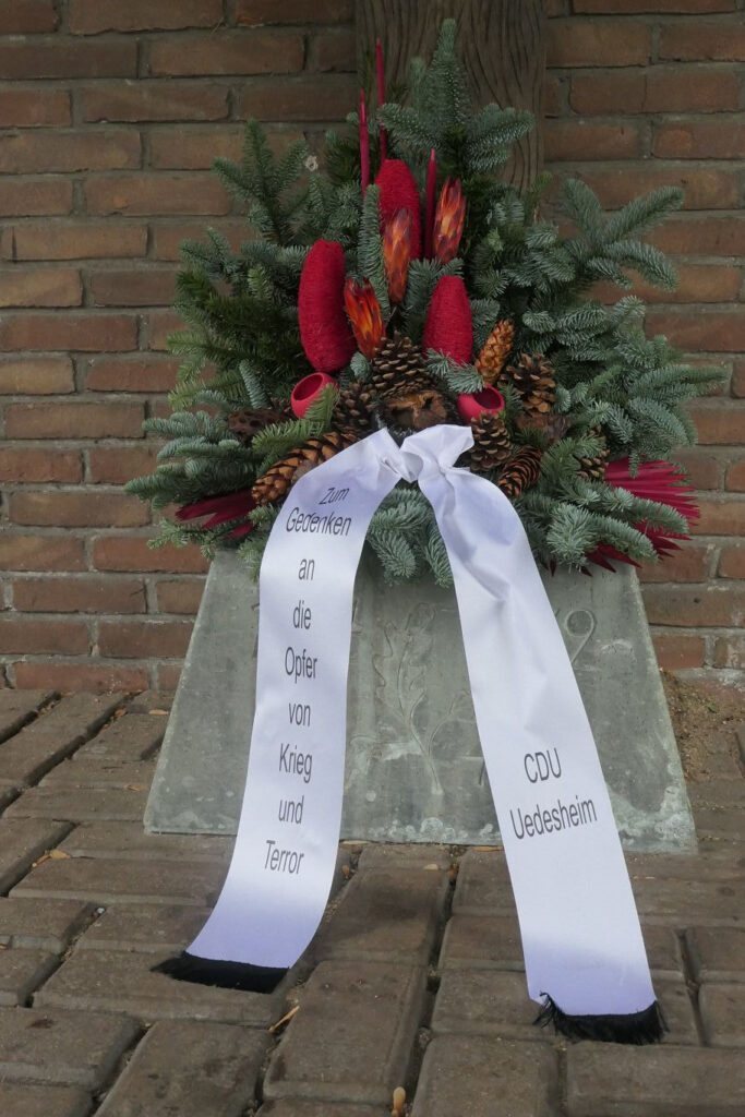 Auch im Jahre 2025 hat die CDU Uedesheim mit einem Gesteck am Kriegerehrenmal der Opfer von Terror, Verfolgung und Kriegen gedacht.